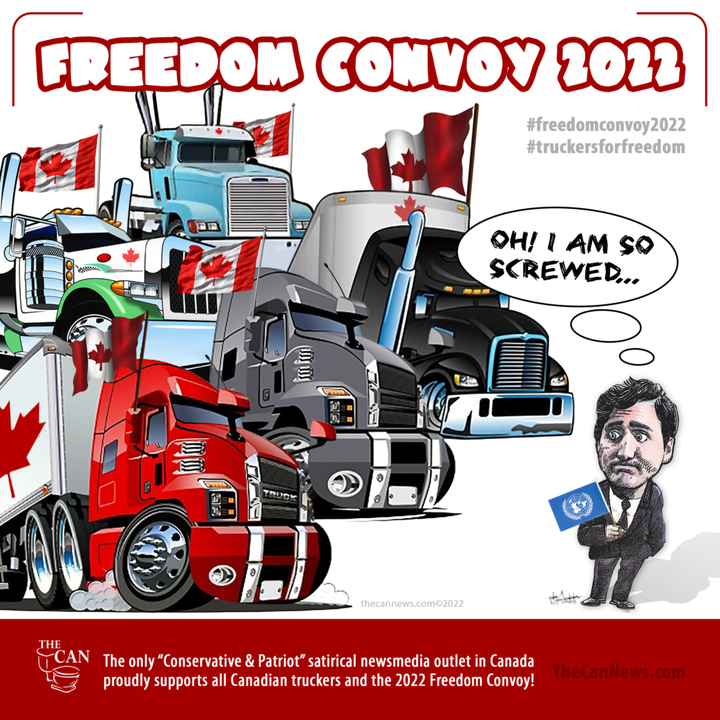 2022 Freedom Convoy – Canada 4 years ago THE CAN – The only “Conservative & Patriot” satirical newsmedia outlet in Canadaproudly supports all Canadian truckers and the 2022 Freedom Convoy! #freedomconvoy2022 #truckersforfreedom Share this Facebook Twitter Pinterest Email Reddit You might be interested in Alberta Milker’s Cash Cows Haul in $8K/Week on OnlyFans Canadian Patriotism Spikes Alongside Middle-Class Bankruptcy Leadership Race: Best of Liberal Party Leeches Line-Up to Lose Next Election