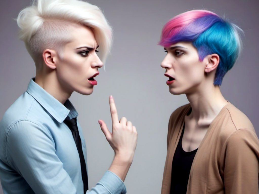 Apple, a gender-fluid individual who describes itself as “a female goddess in male form,” prefers the pronouns “vee/vim/vicodin.” Freddy’s mother, Garth, exudes the rugged demeanor of a 60s-era Clint Eastwood. “Feel” insists on being called “feel/lucky/punk.”